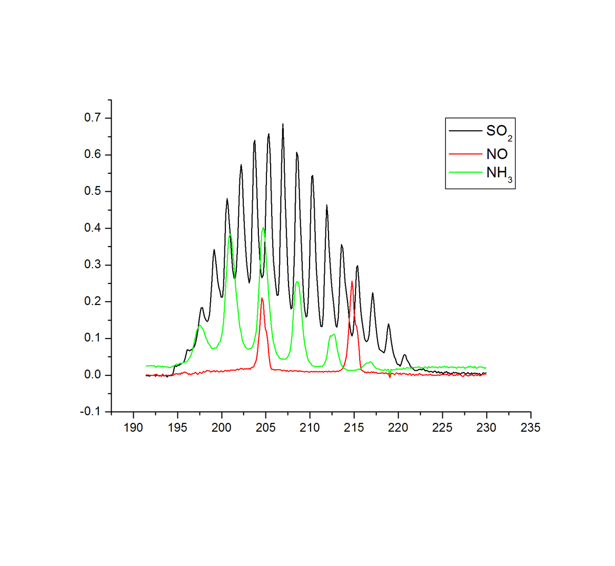 SO2:0-50/100/500mg/m3 NO:0-50/100/500mg/m3 O2:0-25% |